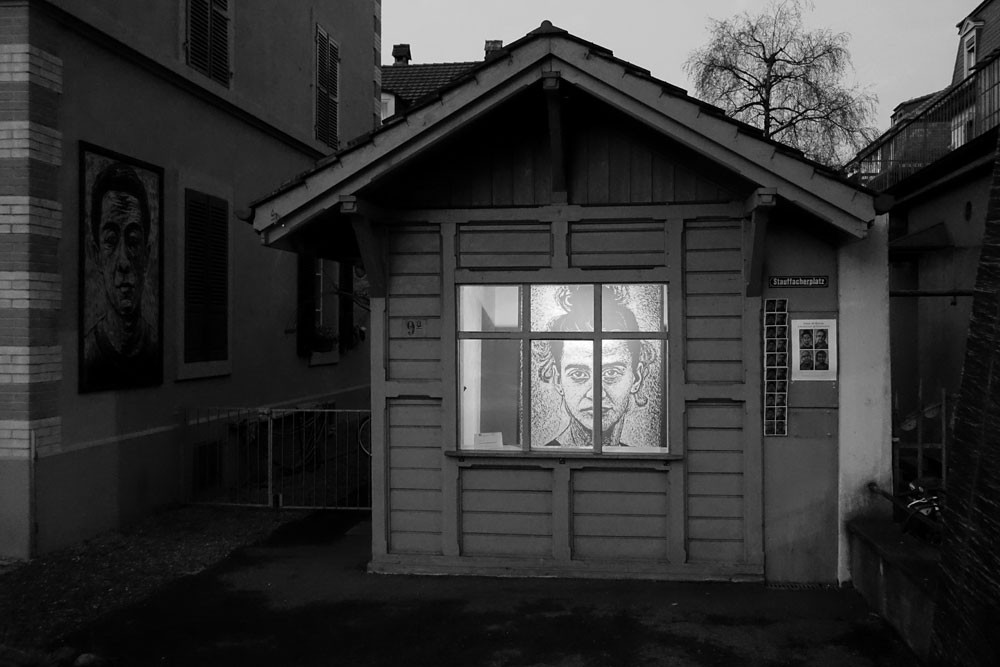 Im Januar 2016 zeigte 9a am Stauffacherplatz – von aussen sichtbar – an jedem Tag des Monats einen anderen Holzschnitt aus der Serie «face of berne».