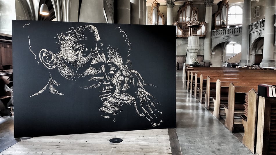 Von März bis August 2020 waren im Rahmen des Festivals der Kulturen Werke von Künstlerinnen und Künstlern, mit und ohne Migrationsvordergrund, in der Heiliggeistkirche zu sehen - ein Statement gegen Rassismus.