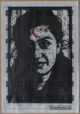 Mein Beitrag sind Holzdrucke aus der Serie "face of berne".